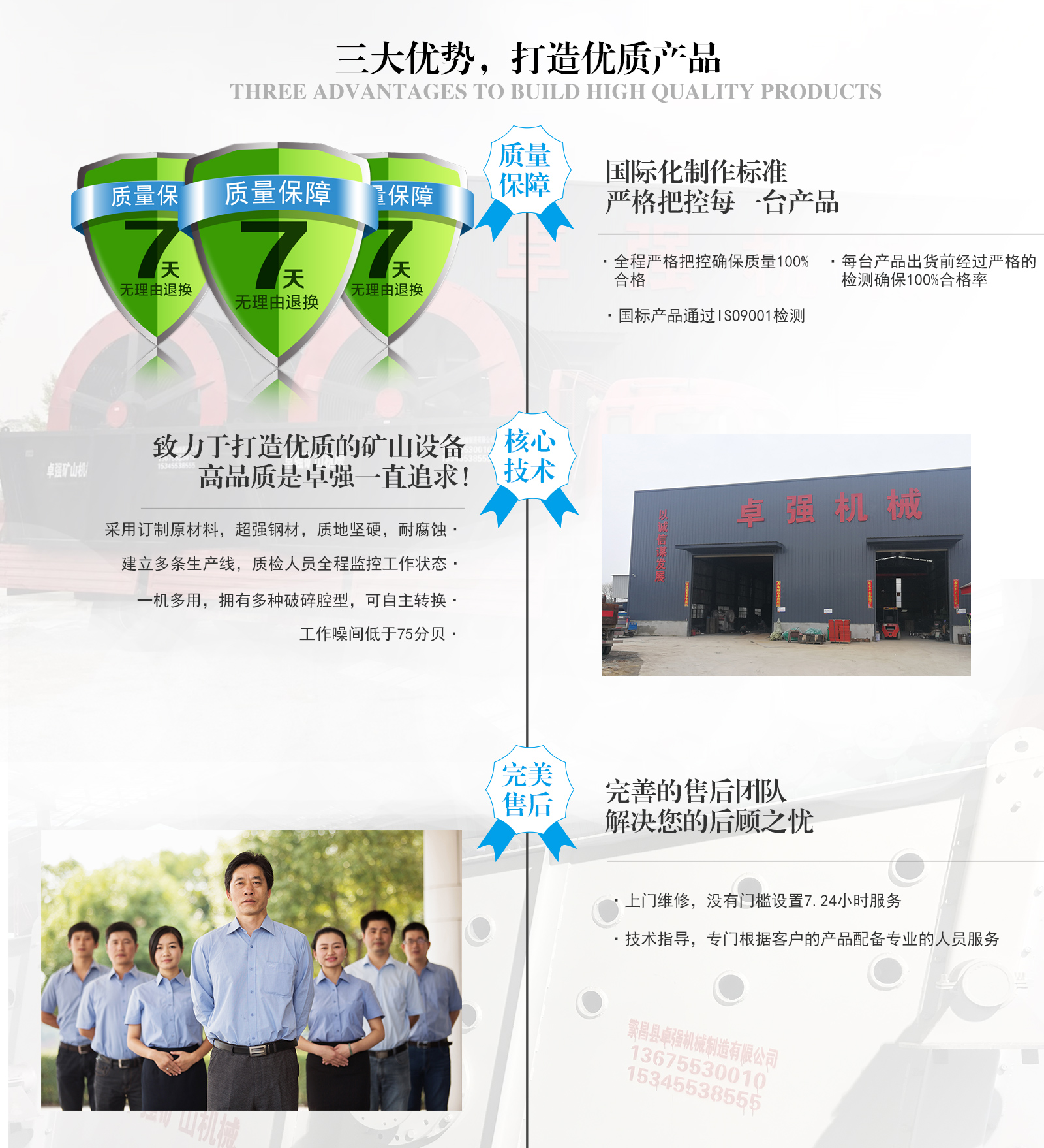 繁昌縣卓強(qiáng)機(jī)械制造有限公司是一家以生產(chǎn)品質(zhì)礦山設(shè)備為主,集設(shè)計(jì)、生產(chǎn)、銷售、售后為一體的廠家。公司位于安徽省蕪湖市繁昌縣高速入口3千米處!主營產(chǎn)品:洗砂設(shè)備、制砂設(shè)備、破碎設(shè)備、輸送設(shè)備、顎式破碎機(jī)及全套配件、圓錐機(jī)配件等全套礦山設(shè)備!卓強(qiáng)嚴(yán)格奉行用戶至上、用心服務(wù)的方針。以全天候24小時(shí),誠心誠意為用戶服務(wù)的經(jīng)營理念,得到了廣大用戶的信賴和支持。熱烈歡迎廣大用戶前來我廠參觀考察!如有需要請(qǐng)及時(shí)與我們聯(lián)系!我們熱忱歡迎您的到來!